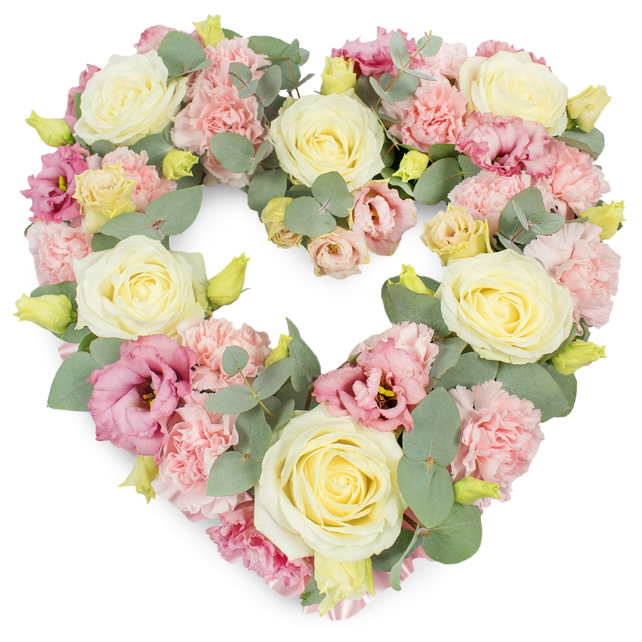 Expertly arranged by our skilled florists in Loughton, this open heart tribute offers a refined and graceful focal point for funerals, memorials or celebration-of-life services. Approximate dimensions are 43cm (17") in height and 42cm (16.5") in width, making it ideal for placing beside the coffin or on a stand.